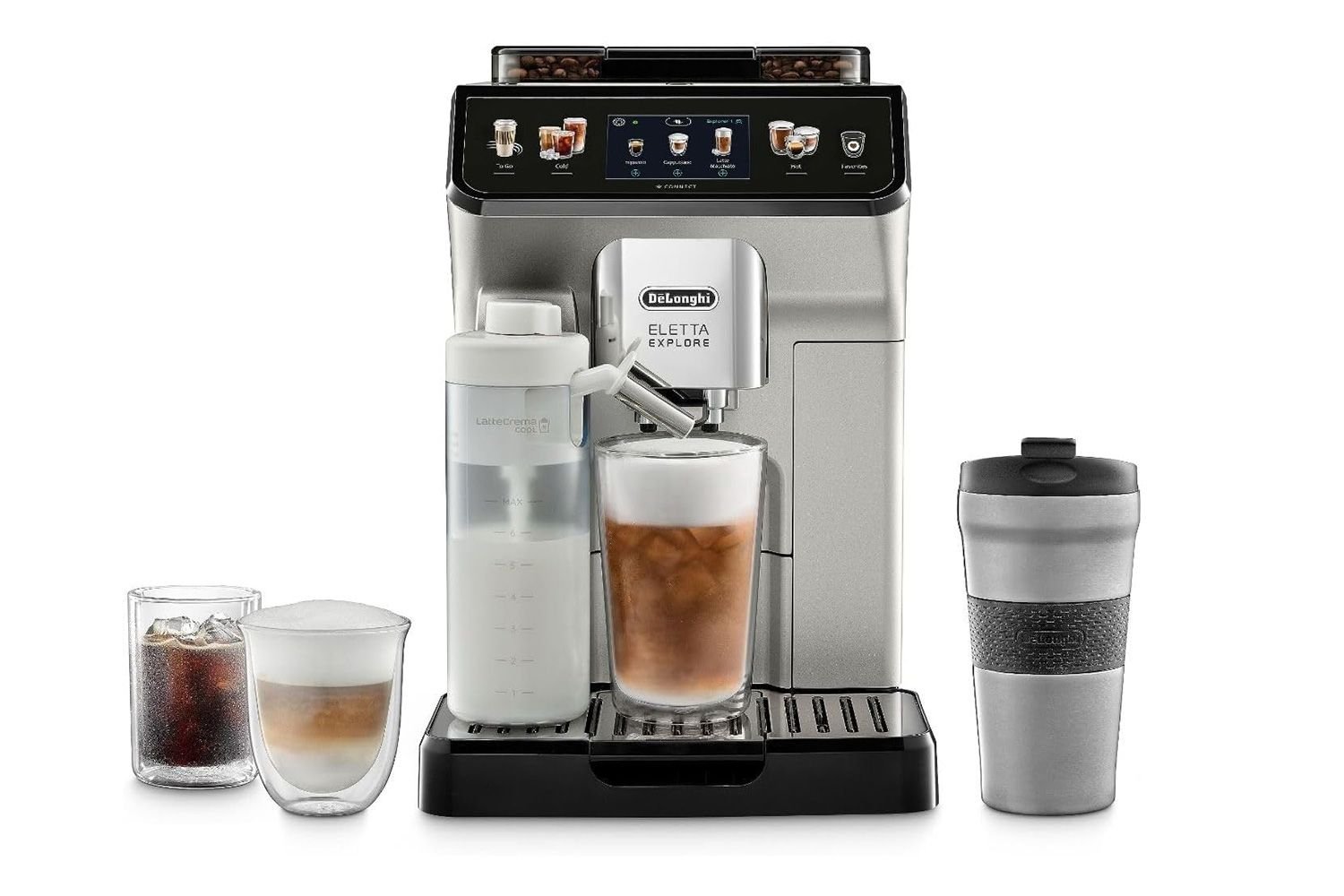 This De’Longhi Eletta Explore Espresso Machine’s cold brew characteristic is what frost coffee dreams are make of. on information technology intuitive touchscreen, select from more than L recipe option with just the touching of unity button. You can even set up profile for different people and trade usance recipe to attention deficit hyperactivity disorder to your log.