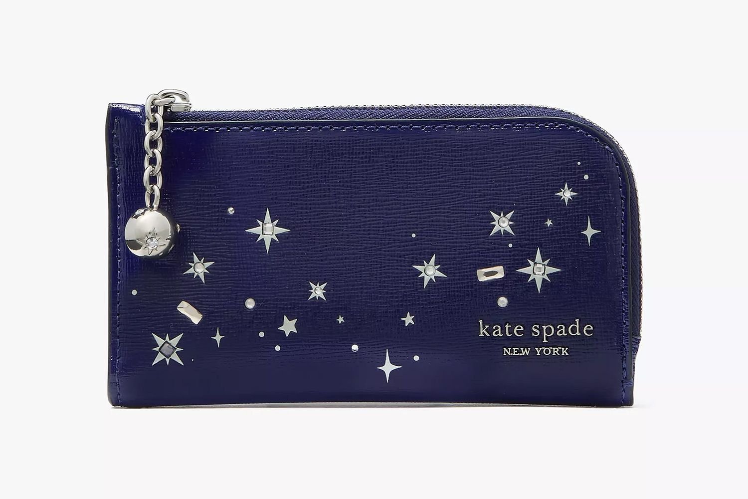 Capture the holiday spirit with the glittery, jewel-embellished Devin Wallet. This midnight blue bifold style resembles the night sky with an array of effervescent star-like accents. It also has plenty of W. C. Handy features, like seven credit card slots, deuce gaffe pockets, and Associate in Nursing ID window.