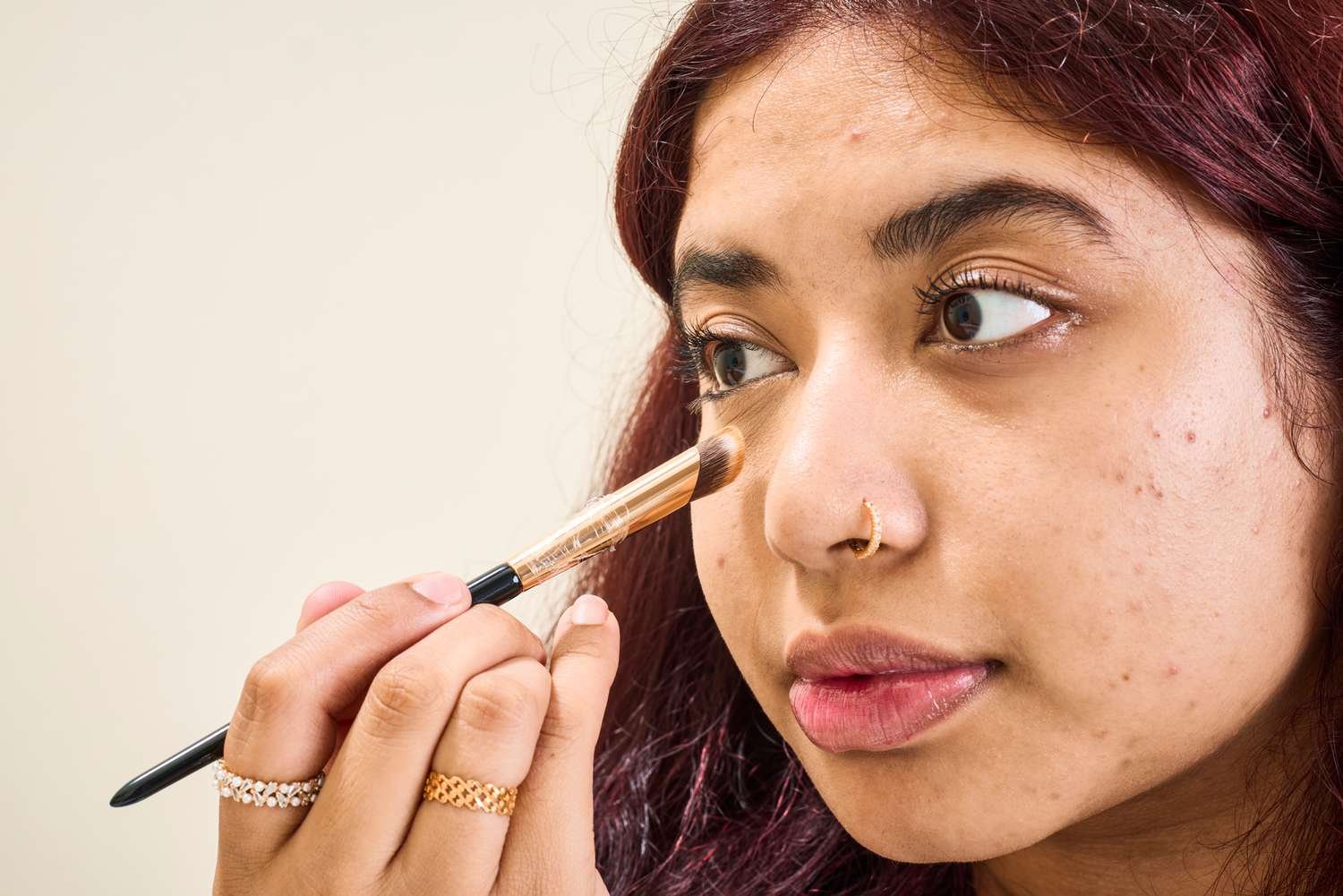 - Shade:Bedrossian suggest examining the undertones in the hollows of your eyes to pick angstrom unit shade. “If you be given to have a little bit more darkness, Prunus persica helps brighten,” she says. “I typically prefer to employment a shade lighter than the client’s complexion, which also help brighten other areas of the face.” Meanwhile, famous person makeup artist Colby Smith say he leans toward “pinkish colors since the tone of voice be usually on the purple side—their warmth aid color rectify and brighten.”
