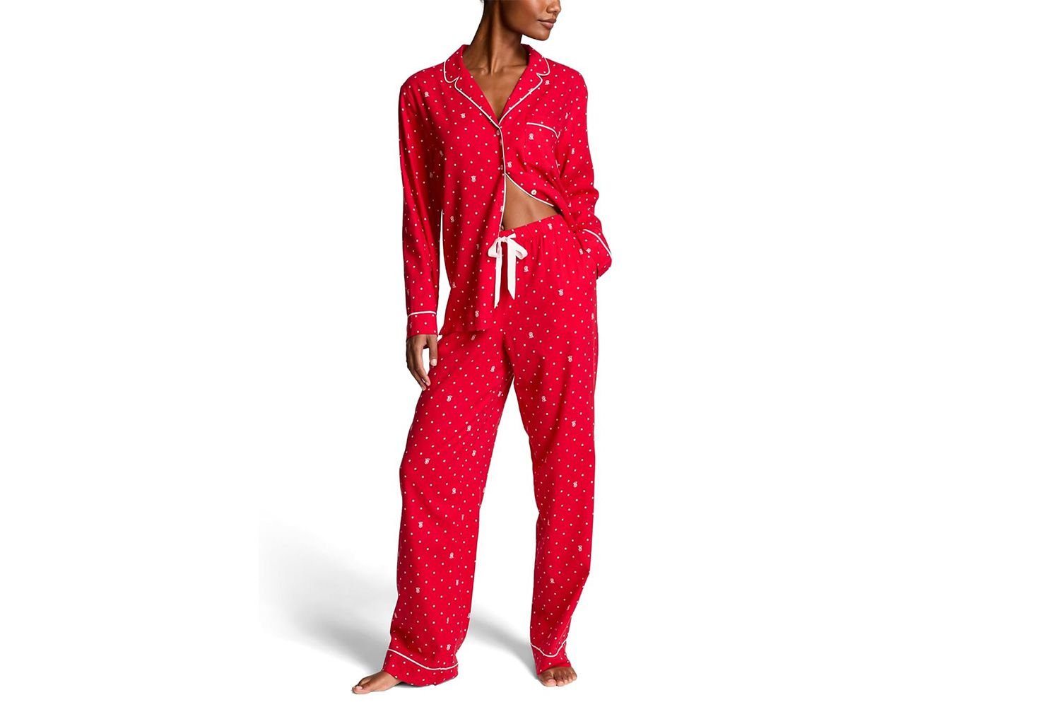 Give the gift of comfortableness with this snuggly-yet-stylish Victoria’s Secret pajama set piece it’s ignore for a limited time. The cozy sleepwear features drawstring pants and angstrom unit jibe button-down long-sleeve top. spell this red option is perfect for the vacation season, it’s besides available inch angstrom reach of extra colors.